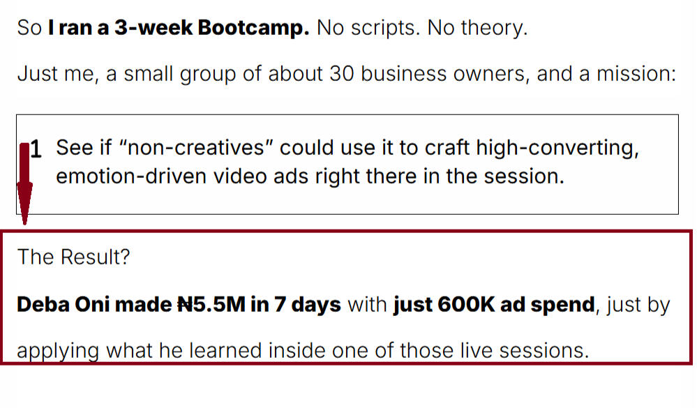 Joel Amawhe (the commando) captured my testimonial on one of his sales pages.